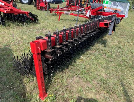 - Секции снабжены пружинным компенсатором, позволяющим улучшить копирование рельефа. Борона с секциями, установленными на междурядье 100 мм;