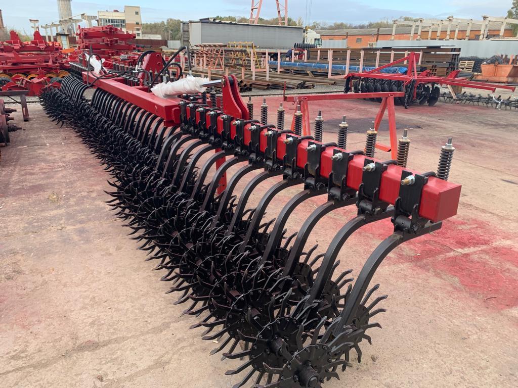 • Секции снабжены пружинным компенсатором, позволяющим улучшить копирование рельефа. Борона с секциями, установлены на междурядье 100 мм;