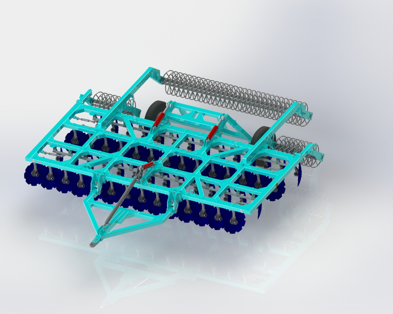 Борона оснащается усиленной рамой, стойками 55 мм или увеличенного диаметра 58 мм с разгрузочной втулкой, дисками Bellota диаметром 560 мм.