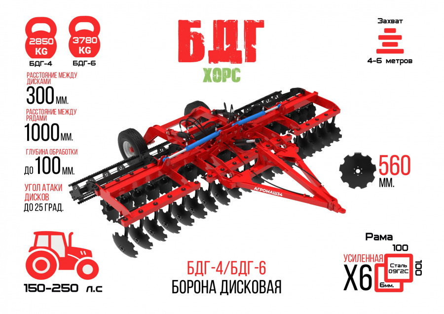 В нашей компании Вы можете купить Дисковую борону БДГ-4х2 «ХОРС» с доставкой до Вашего хозяйства по выгодной цене.