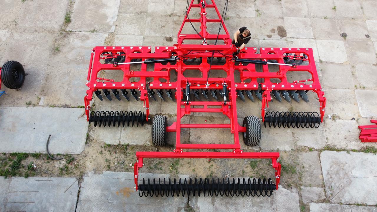 Борона дисковая прицепная складная БД-Агро 7х2ПГ со спиральным (планчатым) шлейф-катком используется для обработки любого типа грунта глубиной рыхления до 15 см. Формирует эффективную природную структуру почвы, что способствует благоприятному росту растений, а также прикатывает покрывной слой грунта для сохранения влаги. Данный почвообрабатывающий агрегат включает в себя назначение не только лущильника, культиватора, но и дисковой бороны. Он равномерно распределяет удобрения и остатки растений, повышая тем самым устойчивость грунта к эрозии.