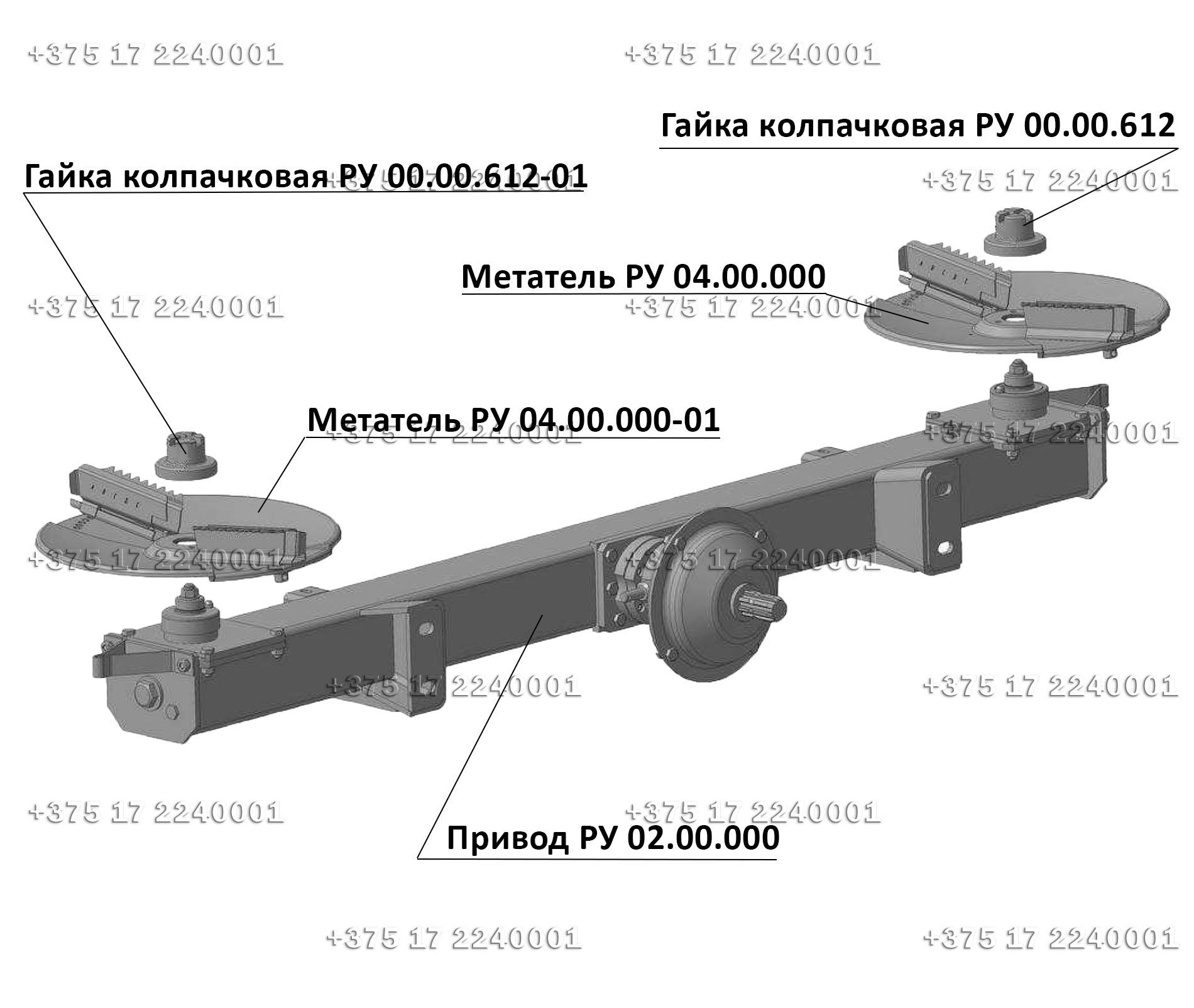 Гайка колпачковая РУ 00.00.612 (-01) применяется на Разбрасывателях минеральных удобрений РУ-1000, РУ-1600 и РУ-3000. Производитель - Республика Беларусь.