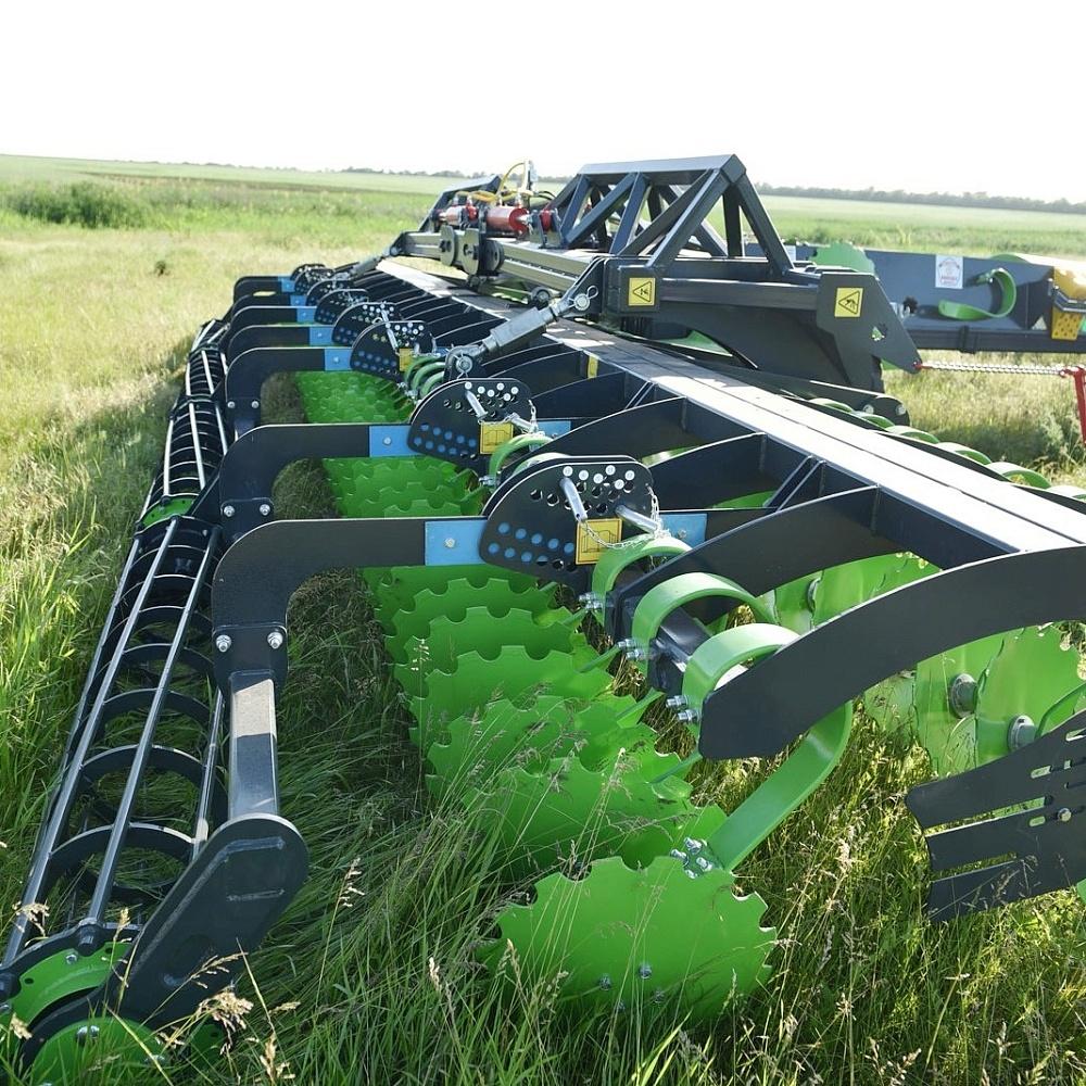• Увеличенное расстояние между рядами рабочих органов - 1 метр 20 сантиметров, расстояние от заднего ряда дисков до катка - 1 метр;
