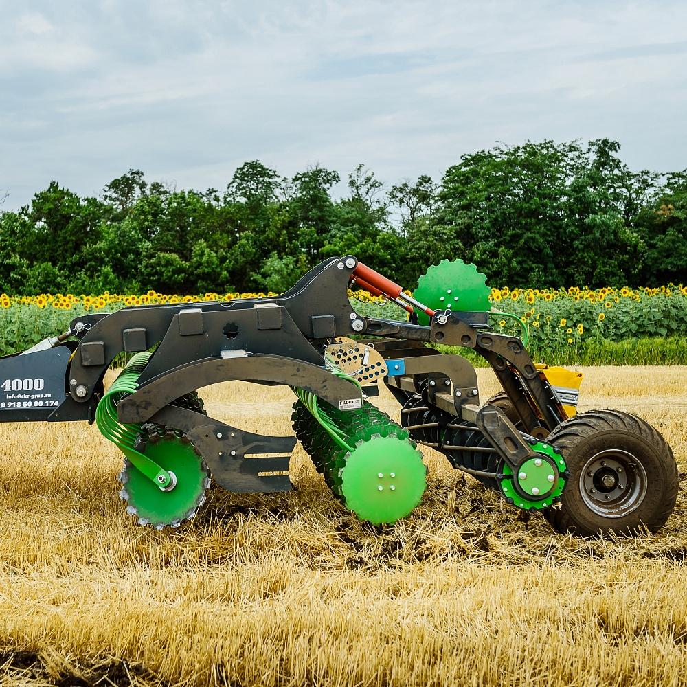 Дисковая борона Carbon D4000 на подпружиненной стойке (3D), как и лущильник, предназначены как для поверхностной стерневой обработки на лёгких и средних почвах, так и для предпосевной обработки почвы для посева по мульче или после вспашки. Может работать по влажной почве не забиваясь, идеально копирует практически любой рельеф почвы, за счет пружинной стойки, выдерживает заданную глубину по всей ширине захвата, работает на глубину от 3 см до 15 см, сборка бороны дисковой SKR производится на 90% из комплектующих нашего производства исключение составляют: гидроцилиндры, колеса, подшипники.