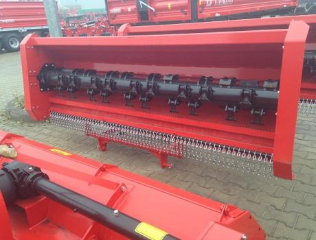 Косилка мульчерная Metal-Fach Z-022 ЭКО шириной захвата 1,35 метра с опорным катком и молотками предназначена для измельчения пожнивных остатков различных культур, а также для измельчения срезанных веток деревьев и кустарников, она также идеально подходит для мульчирования лугов и пастбищ. Массивная, продуманная конструкция обеспечивает безаварийную работу на протяжении всего срока эксплуатации. Есть возможность изменения высоты резки с помощью регулируемой подвески колес. Косилка вместо опорных колес может быть также оснащена копирующим валом с регулировкой высоты. На заводе косилка оснащается ножами типа „Y”, но есть возможность применения ножей другого типа или молоточков. Устройство работает от вала приема мощности трактора с помощью шарнирно-телескопического вала (620 Нм, муфта со срезными штифтами) 540 Об/мин.