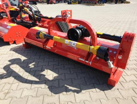 Косилка мульчерная Metal-Fach Z-022 ЭКО шириной захвата 1,35 метра с опорным катком и молотками предназначена для измельчения пожнивных остатков различных культур, а также для измельчения срезанных веток деревьев и кустарников, она также идеально подходит для мульчирования лугов и пастбищ. Массивная, продуманная конструкция обеспечивает безаварийную работу на протяжении всего срока эксплуатации. Есть возможность изменения высоты резки с помощью регулируемой подвески колес. Косилка вместо опорных колес может быть также оснащена копирующим валом с регулировкой высоты. На заводе косилка оснащается ножами типа „Y”, но есть возможность применения ножей другого типа или молоточков. Устройство работает от вала приема мощности трактора с помощью шарнирно-телескопического вала (620 Нм, муфта со срезными штифтами) 540 Об/мин.