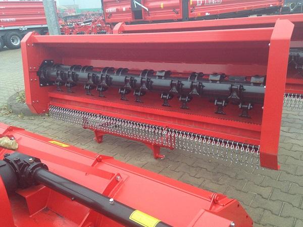 Косилка мульчерная Metal-Fach Z-022 ЭКО шириной захвата 2,0 метра с опорным катком и молотками предназначена для измельчения пожнивных остатков различных культур, а также для измельчения срезанных веток деревьев и кустарников, она также идеально подходит для мульчирования лугов и пастбищ. Массивная, продуманная конструкция обеспечивает безаварийную работу на протяжении всего срока эксплуатации. Есть возможность изменения высоты резки с помощью регулируемой подвески колес. Косилка вместо опорных колес может быть также оснащена копирующим валом с регулировкой высоты. На заводе косилка оснащается ножами типа „Y”, но есть возможность применения ножей другого типа или молоточков. Устройство работает от вала приема мощности трактора с помощью шарнирно-телескопического вала (620 Нм, муфта со срезными штифтами) 540 Об/мин.