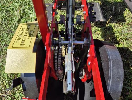 • При движении трактора приводное колесо через зубчатую передачу приводит во вращение высаживающий диск;