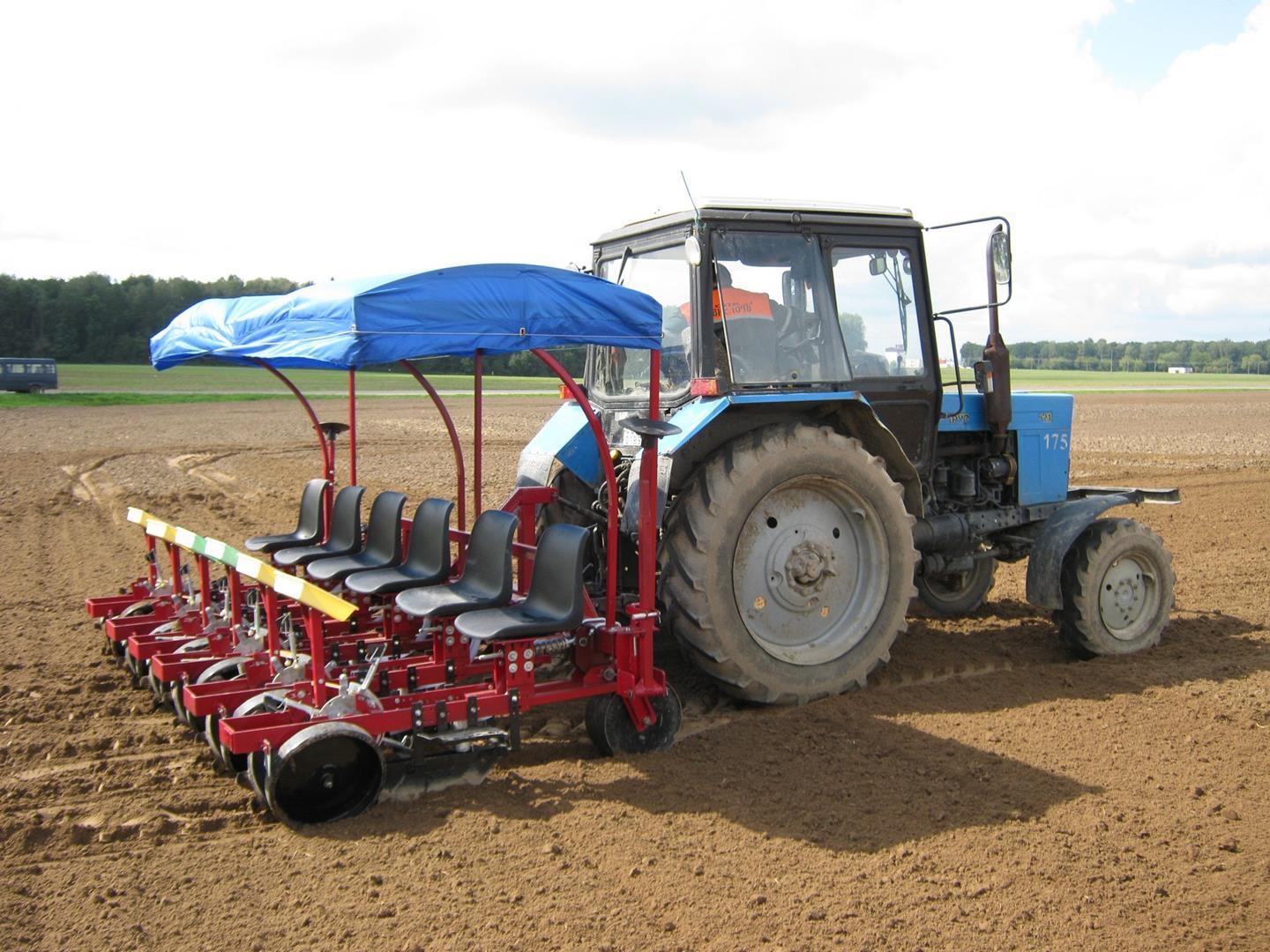 • При движении трактора приводное колесо через зубчатую передачу приводит во вращение высаживающий диск;