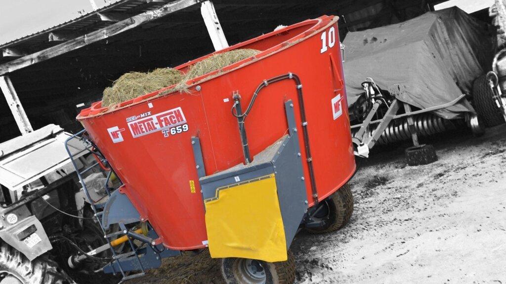 Миксер-кормораздатчик вертикальный Metal-Fach Т-659 (6 м³, Standart) - компактный кормораздатчик с двумя разгрузочными окнами. Высокоманевренная модель, которой удобно управлять даже на ограниченной площади здания. Позволяет обеспечить качественное смешивание корма с высокой поедаемостью скотом или птицей.
