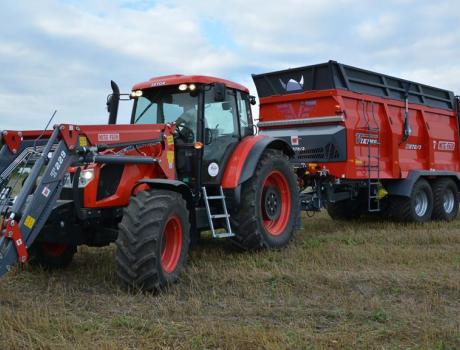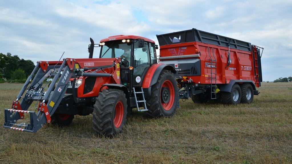 Навозоразбрасыватель (машина для внесения твердых органических удобрений) Metal-Fach N-272/3 «VIKING» грузоподъемностью 18 тонн - модификация для агрохолдингов и крупных хозяйств. Позволяет внести до 18 тонн удобрения за один заход, не тратя времени на повторную загрузку. Вертикальный адаптер с двумя барабанами равномерно распределяет навоз на полосе шириной 8-12 метров.