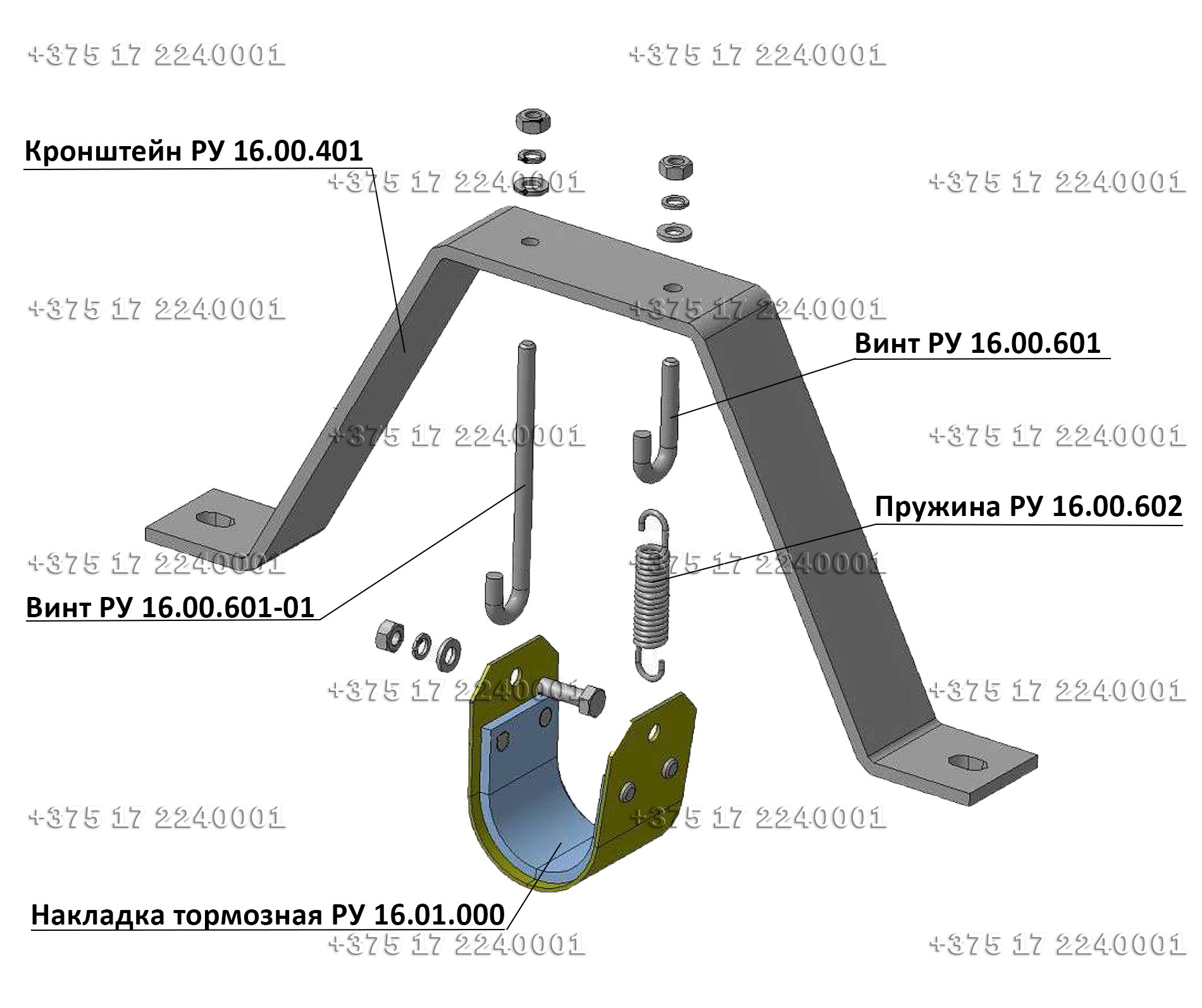 Накладка тормозная РУ 16.01.000 применяется на Разбрасывателях минеральных удобрений РУ-1000, РУ-1600 и РУ-3000. Производитель - Республика Беларусь.