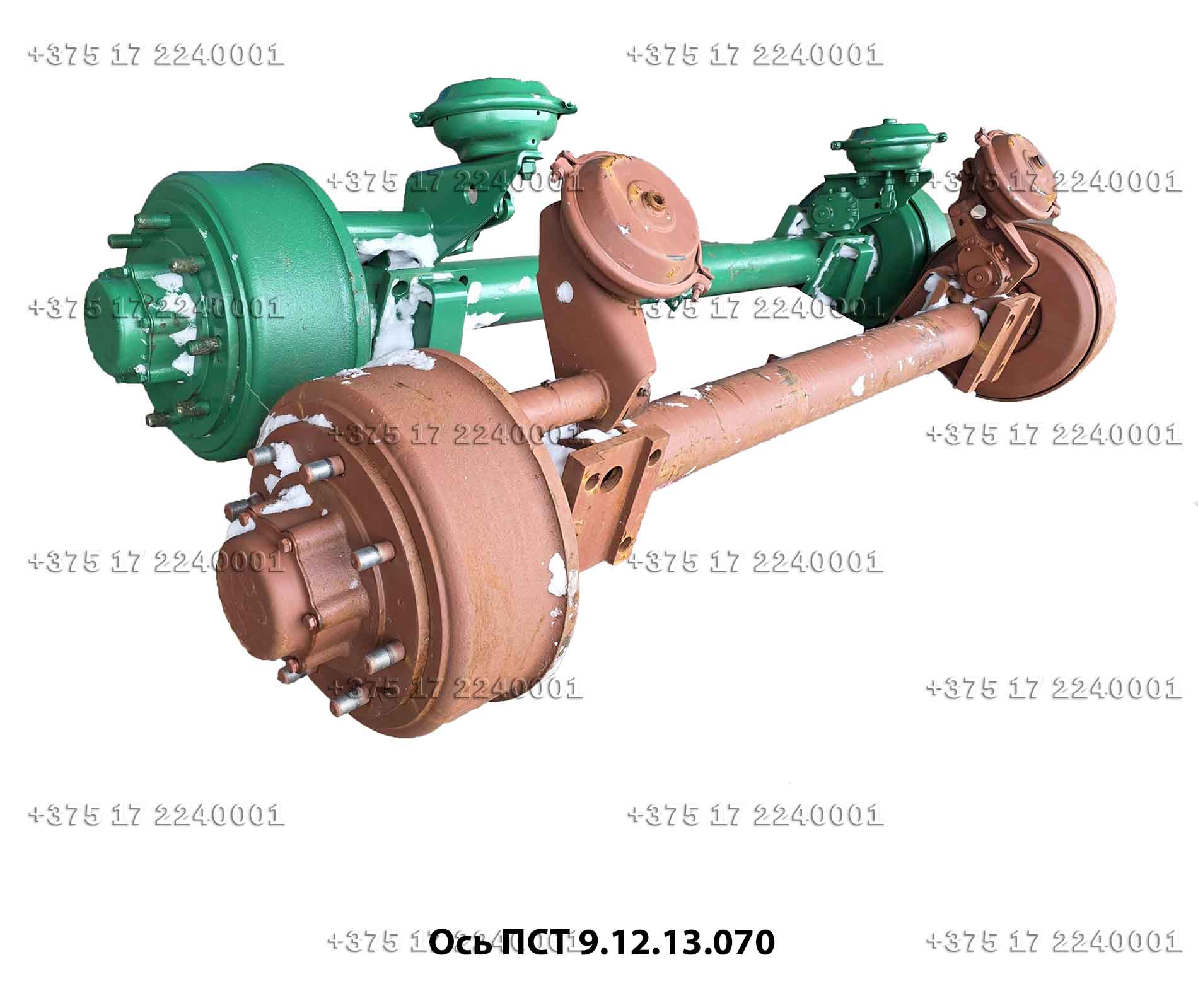 Ось ПСТ 9.12.13.070 применяется на полуприцепах тракторных ПСТ-9, ПСТ-12. Производитель: ОАО "Бобруйскагромаш", Республика Беларусь.