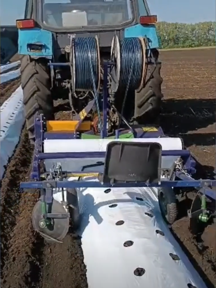 Пленкоукладчик-грядообразователь шнекового типа ПГ-50 с возможностью образования грядки, укладки пленки и капельной ленты одновременно. Формирует плотную гряду высотой до 30 см и шириной 50 см. Также, возможна установка туковысевающего аппарата для внесения удобрений.
