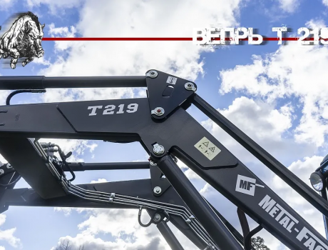 Погрузчик фронтальный Metal-Fach Т-219/1 "Вепрь" (грузоподъемность 1000 кг, высота подъема 3570 мм, быстросъемные крепления EURO, переключение 3-й секции распределителя трактора на рабочие органы погрузчика) подходит для установки на тракторы МТЗ, а также модели других производителей. Обеспечивает грузоподъёмность в 1 тонну. Длина стрелы составляет 2,3 метра. Установлена надёжная трёхсекционная гидравлика. Управление осуществляется с помощью электромагнитного клапана. Обеспечивает подъём грузов на высоту 3,5 метра.