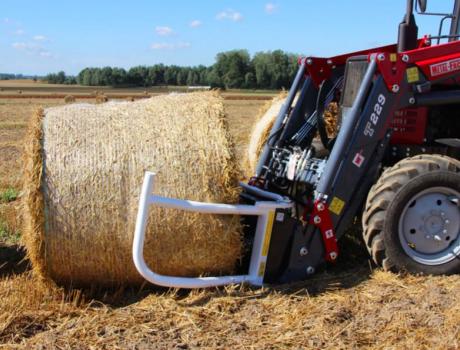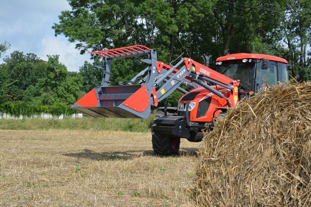 Фронтальный погрузчик для трактора обеспечивает максимальную грузоподъёмность в 1,6 тонны. Вылет стрелы составляет 2,3 метра. Установлена надёжная и долговечная трёхсекционная гидравлика. Управление осуществляется удобным джойстиком. Высота подъёма груза составляет 3,9 метра. Быстрый, маневренный и удобный тракторный погрузчик.