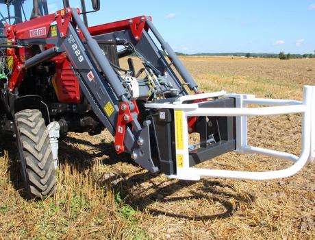 Масса фронтального погрузчика для трактора составляет 650 кг. Максимальная грузоподъёмность 1600 кг. Длина стрелы 3,7 метра. Установлена надёжная и долговечная трёхсекционная гидравлика, снижающая риск неисправности при эксплуатации. Управление осуществляется джойстиком, что позволяет выполнять операции быстро и точно. Высота подъёма груза составляет 4,5 метра.