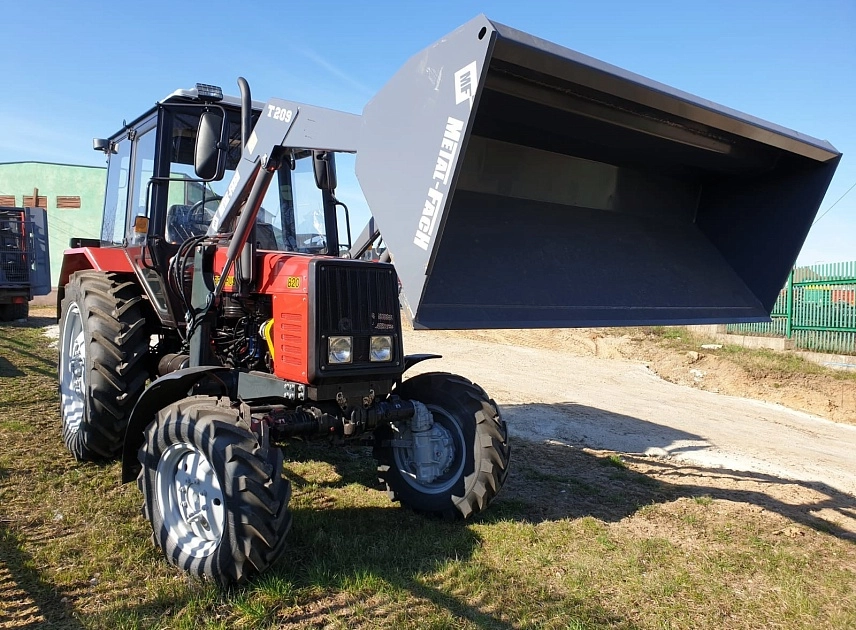 Погрузчик фронтальный Metal-Fach T-209 "Секач" (грузоподъемность 800 кг, высота подъема 3570 мм, управление рычагами трактора, МТЗ-82)