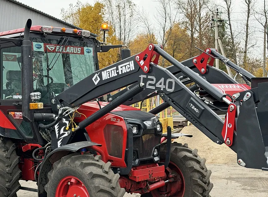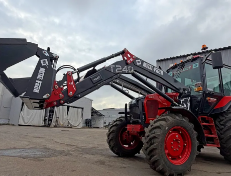 Погрузчик фронтальный Metal-Fach T-240/2 "Медведь" (грузоподъемность 1700 кг, высота погрузки 4000 мм, быстросъемные крепления с трактора, быстросъемные крепления рабочих органов EURO, уровень горизонта, амортизатор виброгаситель, с третьей секцией, с джойстиком и функцией плавающего положения) - это воплощение инноваций, мощности и комфорта. С грузоподъемностью 1700 кг и высотой подъема 4 метра он готов к самым сложным задачам.