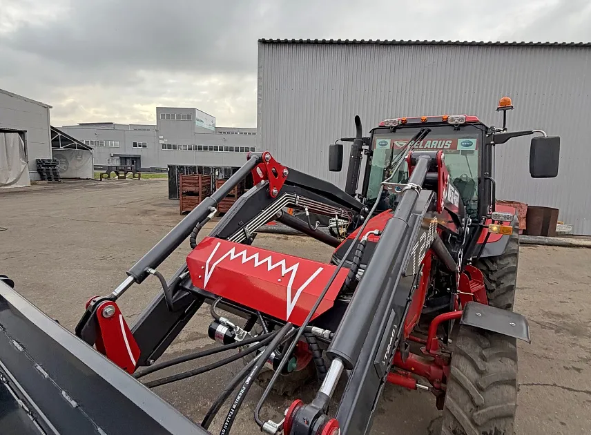 Погрузчик оснащен системой быстросъема стрелы и рабочих органов. Рычаги фиксации и гидравлические муфты расположены с одной стороны. Это позволяет оператору подсоединить или отсоединить навесное оборудование за считанные секунды. Формат крепления EURO (Еврорамка), что открывает доступ к огромному парку навесного оборудования.