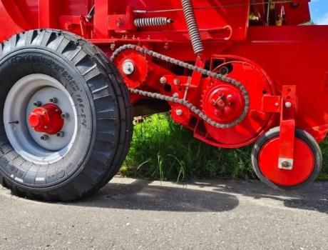 • Установленное копирующее колесо позволяет копировать рельеф местности, тем самым предохраняя подбирающий механизм пресса от ударов о неровности почвы. Данное колесо настраивается на необходимую высоту из возможных четырёх;