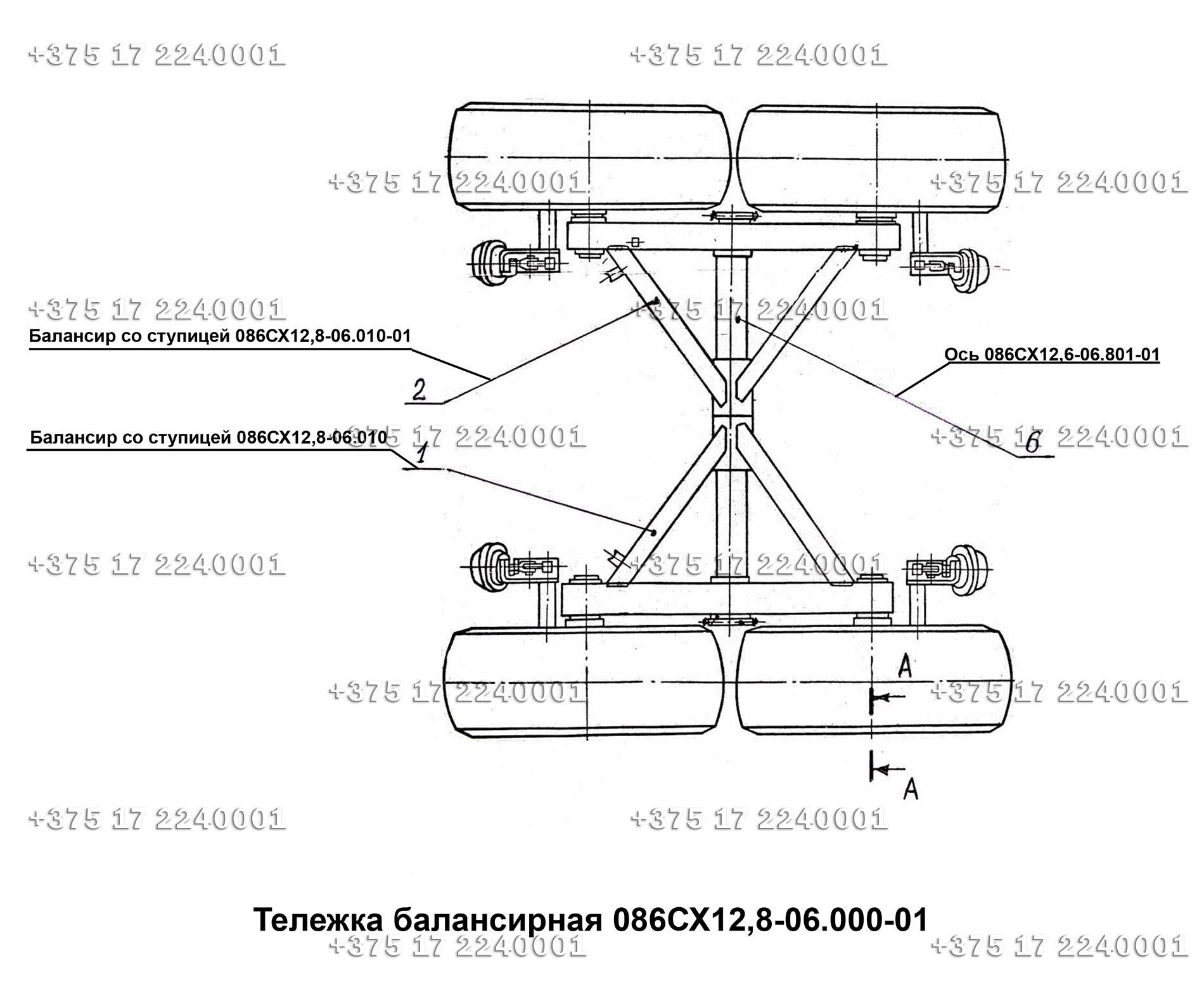 Тележка балансирная 086СХ12,8-06.000-01 применяется на машинах для внесения жидких оганических удобрений МЖТ-Ф-6, МЖТ-Ф-11. Производитель - Республика Беларусь.