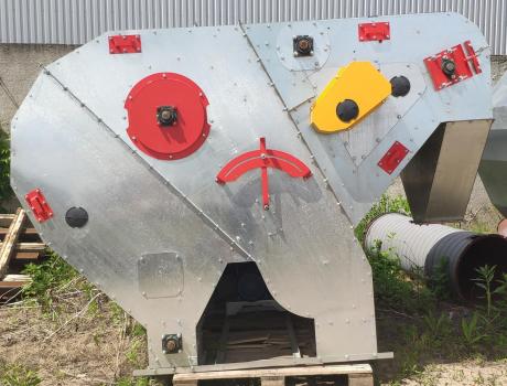Механизм промежуточной камеры включает в себя механизм предназначенные для регулирования скорости воздушного потока. Промежуточная камера включает в себя всасывающий и нагнетательный пневмоканалы. Вентилятор вращаясь создает воздушный поток который обдумает зерно снизу вверх и уносит с собой мелкие примеси в осадочную камеру очистителя. Чем больше открыта заслонка, тем сильней скорость потока воздуха и тем более тяжолую фракцию он выдувает из зерна;