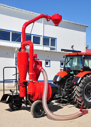 Пневматический транспортёр всасывающие - нагнетательный Т-480 привод от ВОМ трактора (прицепной), (производительность 45 т/ч) предназначен для транспортировки зерна в горизонтальном и вертикальном направлении. Могут быть использованы для разгрузочных работ, таких как: перегрузка зерна с призмы, хранилищ или башни с загрузкой на транспортное средство и наоборот. Позволяет засасывать зерно из зерновых резервуаров, либо силосов или прицепа с помощью сопла, которое находится на конце эластичного шланга, а потом циклоном и дозатором передавать трубопроводом в любое место, например до силосной башни, призмы, технологического устройств.
