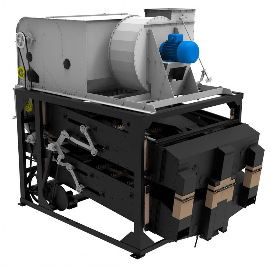 • В аспирационной системе потеря воздушного напора по всей длине сведена к минимуму, за счёт чего повышается тяга и от материала отводится максимальное количество легких примесей;