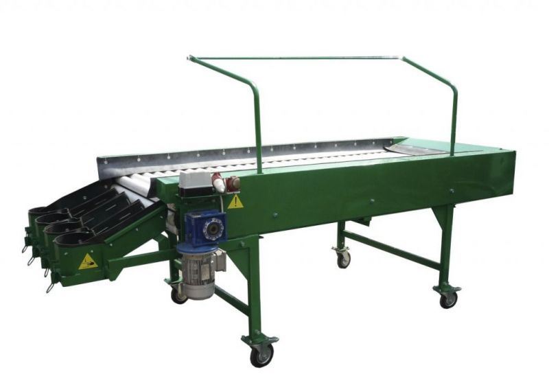 Инспекционный стол предназначен для контроля качества продукта перед отправкой его потребителю. Особенностью данного изделия является то, что транспортер оснащен роликовым полотном, которое используется для визуальной инспекции товарного картофеля. В отличие от ленточного аналога при работе роликового полотна, каждый ролик в нем вращается отдельно и с большей скоростью, чем скорость движения основного полотна. Это позволяет производить наилучший визуальный контроль качества корнеплодов. Далее происходит автоматическое затаривание клубней в сетки или мешки. Имеется возможность регулировки высоты стола, а так же установки освещения, что делает работу на этом оборудовании наиболее комфортной. Инспекционный стол с роликовым полотном целесообразно использовать после сортировки и очистки картофеля такой сельхозтехникой, как картофелесортировальная машина или картофелесортировальный пункт.