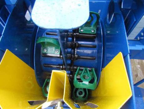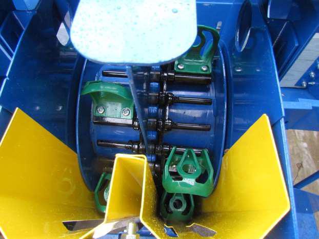 - Клубни картофеля из загрузочного бункера самотеком подаются в питательные бункера высаживающих аппаратов. Уровень клубней в зоне захвата регулируется ограничителями в питательных бункерах и загрузочном бункере;