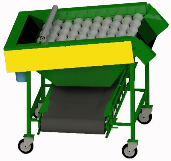Машина сухой мойки ОКС.01.000-01 представляет собой щеточный блок, расположенный под углом к горизонту, и предназначена для предпродажной очистки картофельных, морковных, свекольных клубней от загрязнений, а также очистки луковиц от поверхностного отшелушевающегося слоя. Привод щеточных валов осуществляется посредством цепных передач, каждая из которых имеет возможность регулировки натяжения при помощи эксцентриков. Очищаемый продукт подается на поверхность щеточного блока, где под воздействием щеточных валов происходит механическое удаление загрязнений. Профилированное исполнение щеточных валов в совокупности с наклонным расположением щеточного блока обеспечивает высокую эффективность очистки продукта. Нейлоновый ворс щеток является стойким к износу и мягко очищает поверхность продукта, не вызывая механических повреждений клубней. Отделяемые загрязнения просыпаются на отводящий транспортер длиной 2,3 м. с шириной полотна 0,8 м, что предотвращает их скопление под машиной.