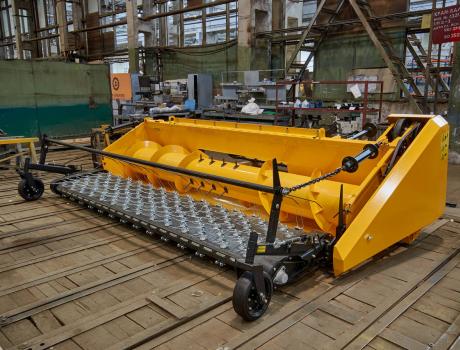 Платформа-подборщик ПП-3,4 применяется для подбора валков зерновых, зернобобовых, крупяных культур, риса, семенников трав, при раздельной уборке урожая. Работает в агрегате со всеми известными зерноуборочными комбайнами. Потребляемая мощность платформы-подборщика - не более 5 кВт. Линейная скорость транспортера от 0,84 до 2,68 м/с;