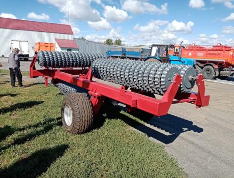 - Размельчение комков: Одной из особенностей прикатывающих катков является состоящая из призменных вершин поверхность катка. Конструкция распределена так, что на каждый квадратный метр почвы приходится 435 острых призменных вершин. Кроме того, на каждый метр таких призменных вершин приходится примерно 350 кг массы, что позволяет раздробить комки даже на самых твёрдых почвах;