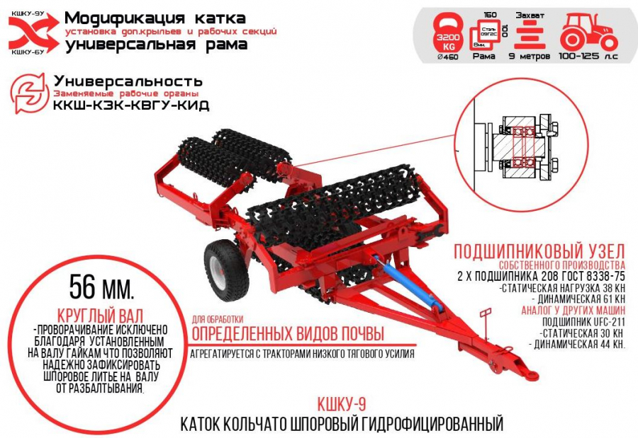 - Универсальность катка. Заменяемые рабочие органы КЗК-ККШ-КВГУ-КИД;