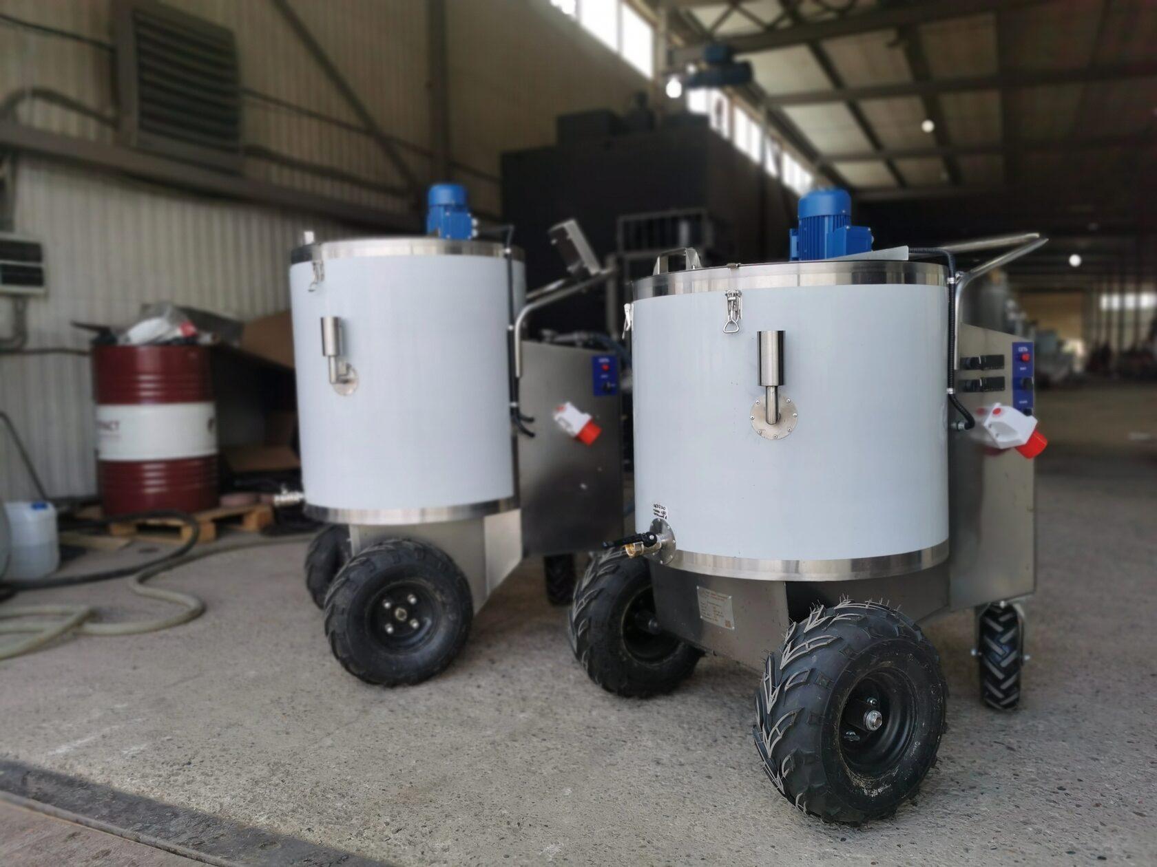 - На платформе установлена нержавеющая емкость типа «термос» с системой подогрева, подставка под вёдра, перекачки смеси из полости бака в емкость для кормления;