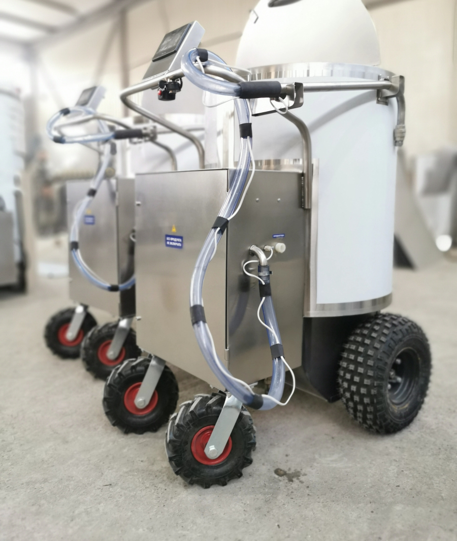 Молочное такси (станция выпойки телят) ТМ-80 объемом 80 литров представляет собой передвижное устройство для хранения транспортировки и приготовления молочной смеси. Такси молочное позволяет просто, быстро и точно обеспечивать телят жидким кормом (цельное молоко, ЗЦМ) в возрасте от одной недели до 4-месяцев, находящихся на индивидуальном содержании. Данное оборудование также подходит для хранения и пастеризации цельного молока. Все используемые материалы являются самыми качественными на Российском рынке и гарантируют длительный срок службы и бесперебойную работу Вашего молочного такси.
