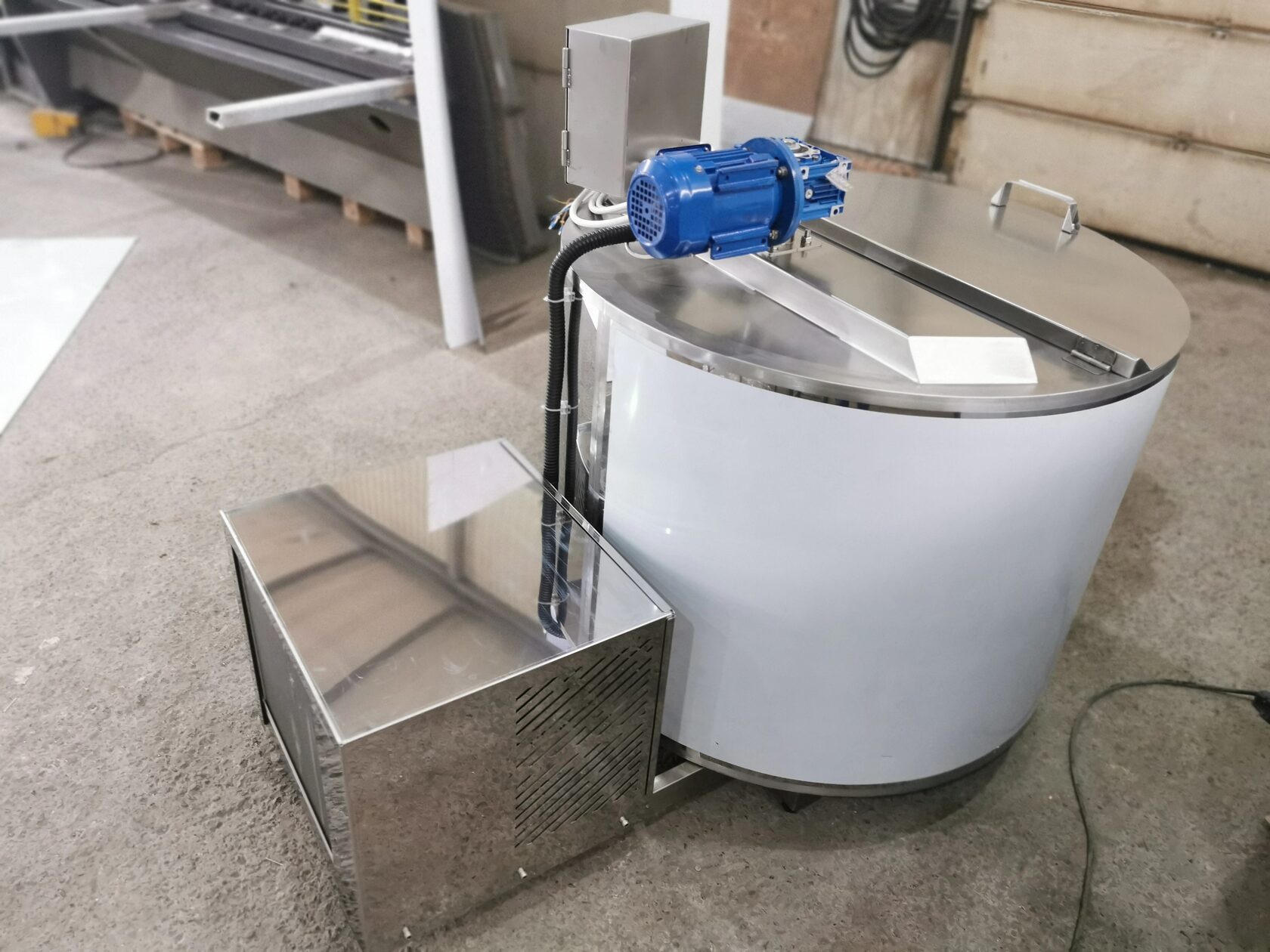 Расположение монорамы ККА возможна как сбоку, так и снизу ёмкости. Новейшие установки охлаждения молока из нержавеющей стали (Aisi304) оснащены: мешалкой, холодильным агрегатом герметичного типа Cubigel (Испания), конденсатором TerraFrigo (Россия), наиболее эффективным испарителем типа «сэндвич», трехфазным мотор-редуктором червячного типа NMRV/NMRW (Россия, Италия) и удобными крышками.