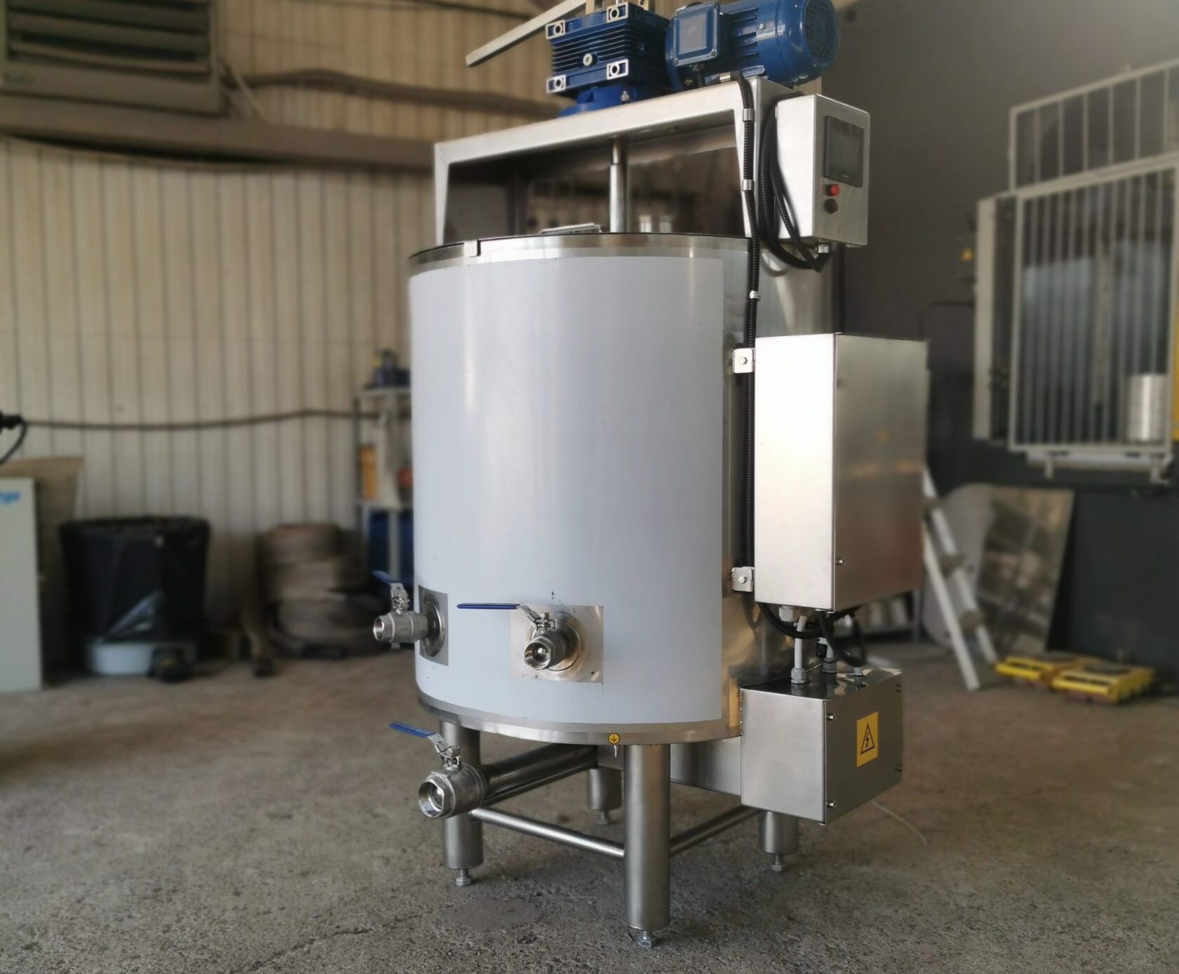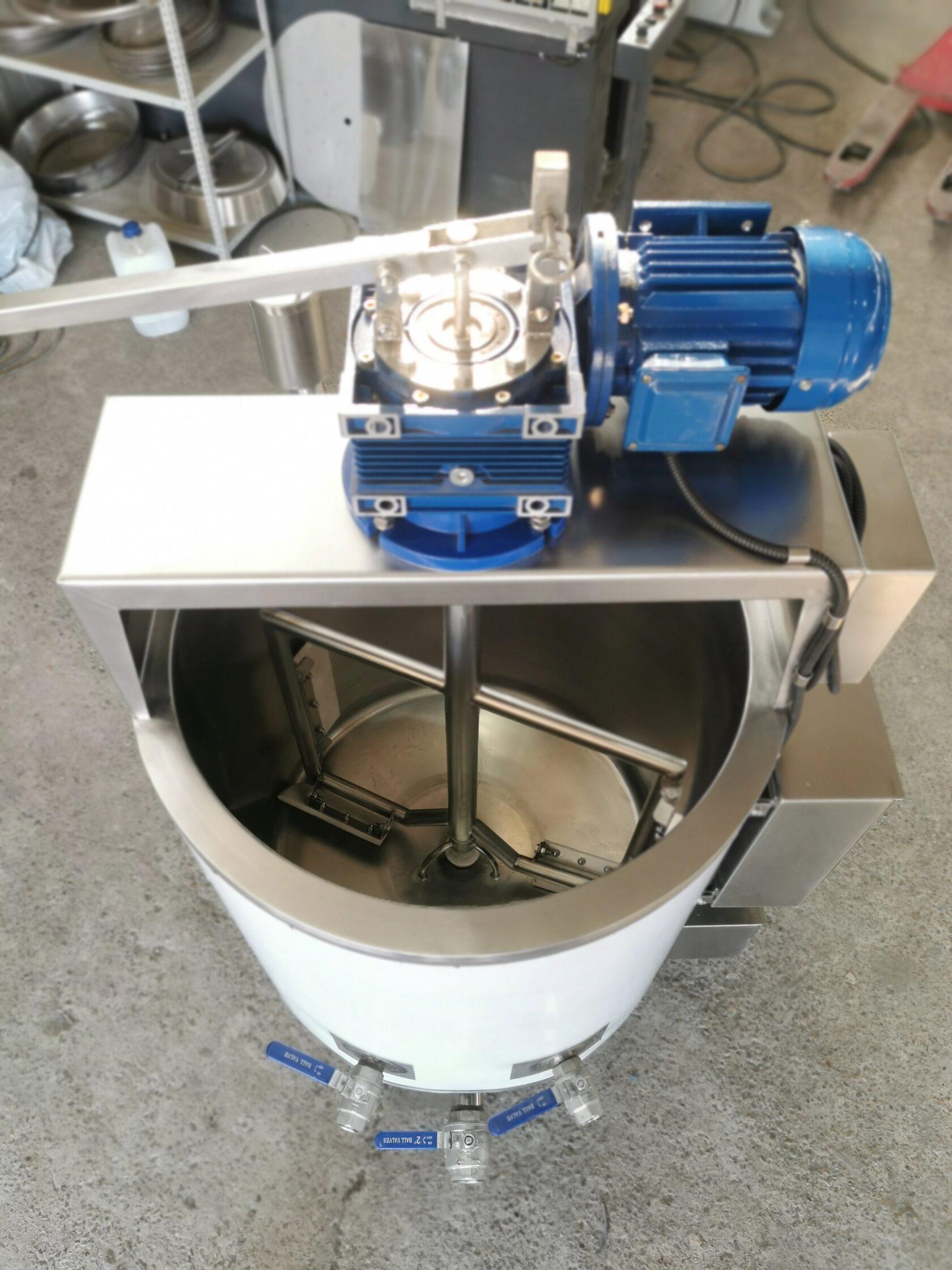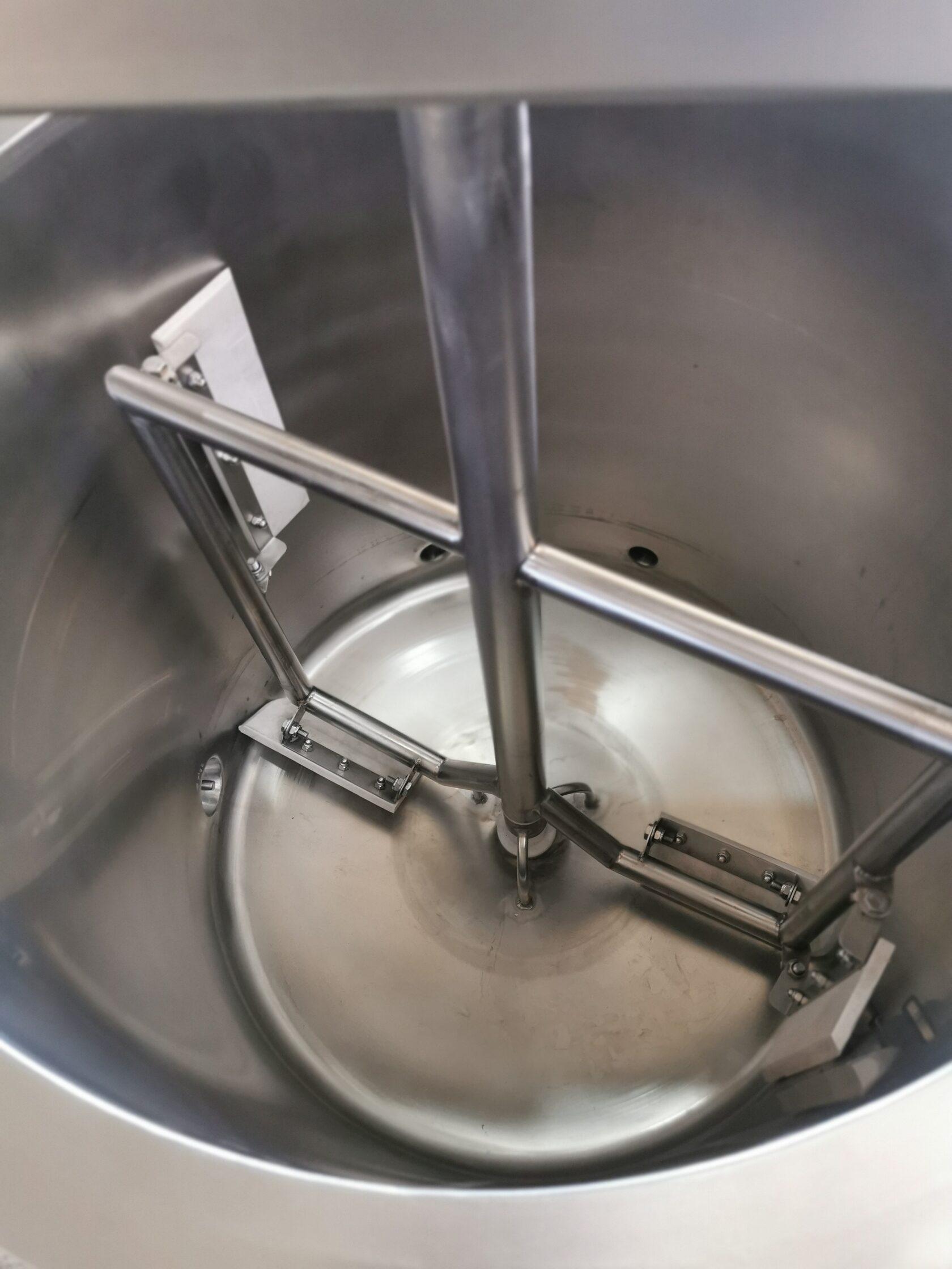 - Ванна заполняется продуктом, а водяная рубашка (межстенное пространство) между корпусом и ванной заполняется водой через вентиль шаровой 3/4″ до уровня переливной трубы. Для ускорения теплообмена включается миксер;
