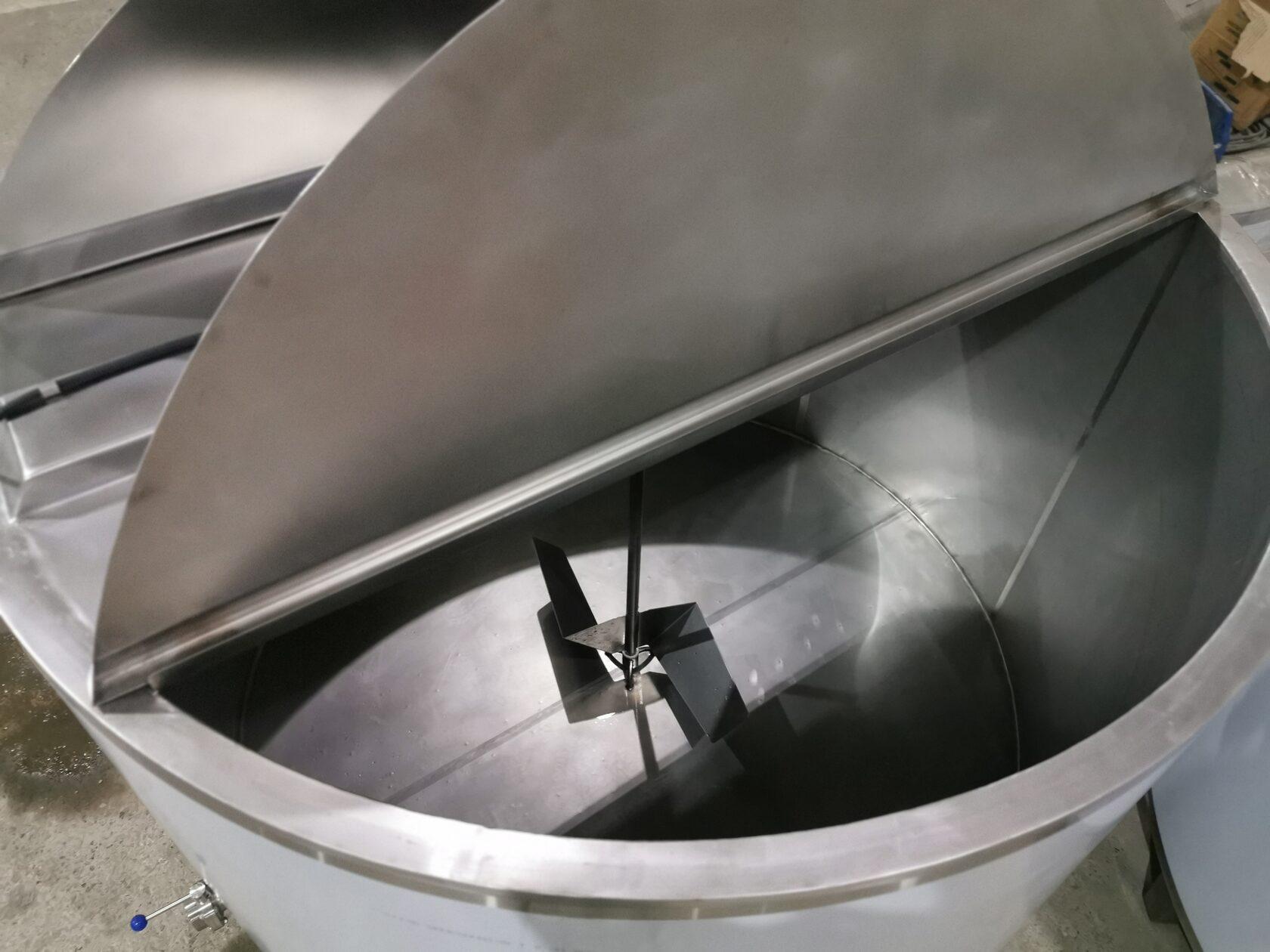 - - Ванна заполняется продуктом, а водяная рубашка (межстенное пространство) между корпусом и ванной заполняется водой через вентиль шаровой 3/4″ до уровня переливной трубы. Для ускорения теплообмена включается миксер;