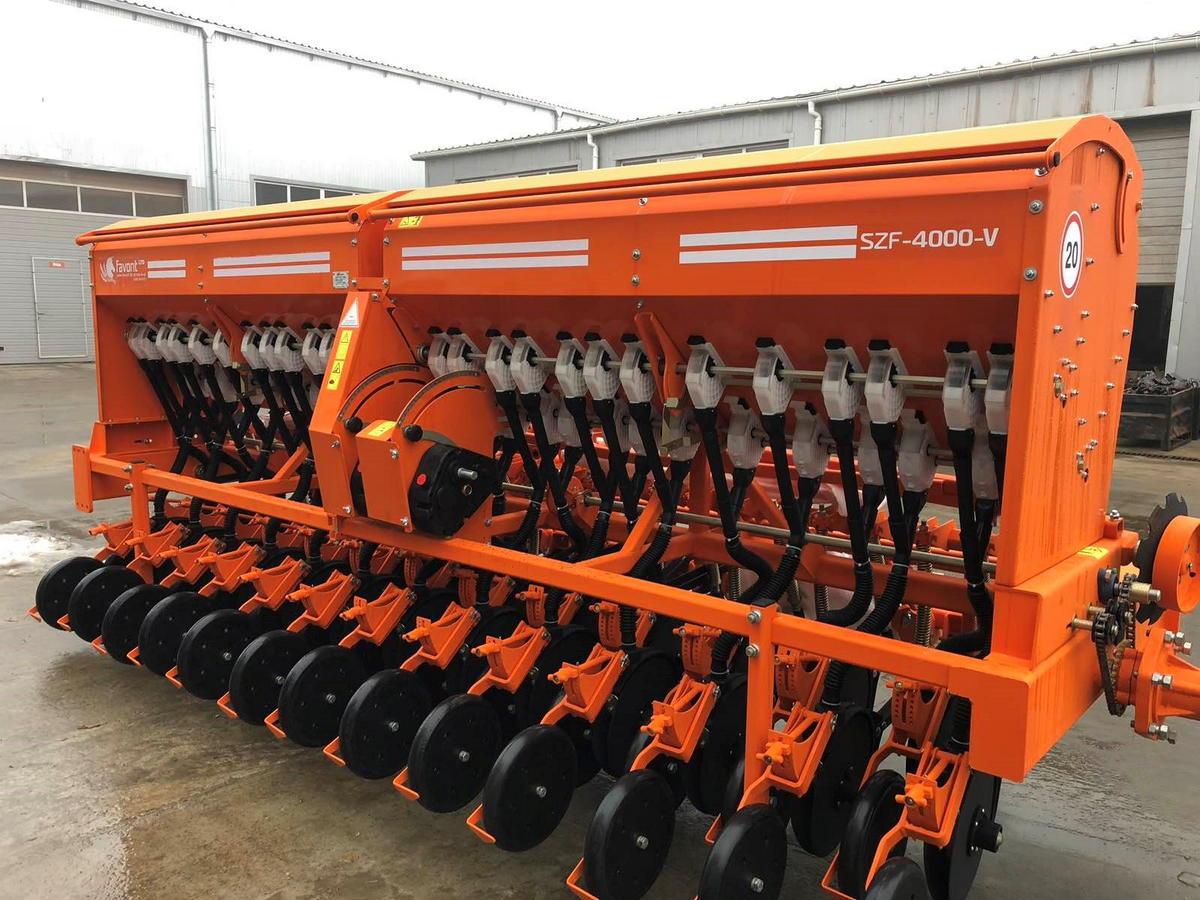 Сеялка зерновая СЗВ 4.000-06V (Вариатор, увеличенный бункер 1,2 тонны, усиленная рама, шины - 12,4R28, сошник БОР со смещением, междурядье 15 см, прикатывающие колеса, норма высева включая мелкосемянные культуры от 1-510 кг/га, маркерная система, давление на сошник до 65 кг) предназначена для высева зерновых (пшеница, рожь, ячмень) зернобобовых (горох, фасоль, чечевица, бобы, соя) и мелкосемянных культур (рапс, горчица, люцерна, эспарцет и т.д.) с одновременным внесением минеральных удобрений.