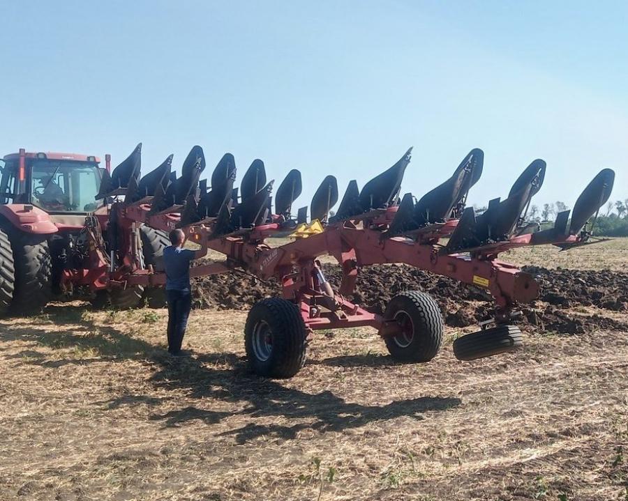 Плуг оборотный полунавесной ПО-7УП на усиленной раме (250 мм) с изменяемой шириной захвата и гидравлической предохранительной защитой (Non-Stop), для вспашки различных почв, засоренных камнями и другими препятствиями.с удельным сопротивлением до 0,09 МПа, на глубину до 27 см. Плуг ПО-7УП должен работать на вспашке полей, вышедших из-под однолетних и многолетних трав (с предварительным дискованием), зерновых, овощных и технических культур.