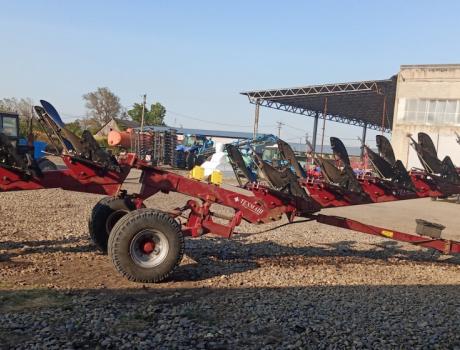 Плуг оборотный полунавесной ПО-9У на усиленной раме (250 мм) с изменяемой шириной захвата и защитой срезной болт, для вспашки различных почв, не засоренных камнями и другими препятствиями, с удельным сопротивлением до 0,09 МПа, на глубину до 27 см. Плуг оборотный ПО-9У должен работать на вспашке полей, вышедших из-под однолетних и многолетних трав (с предварительным дискованием), зерновых, овощных и технических культур.