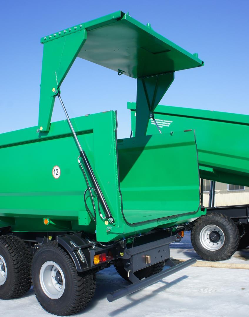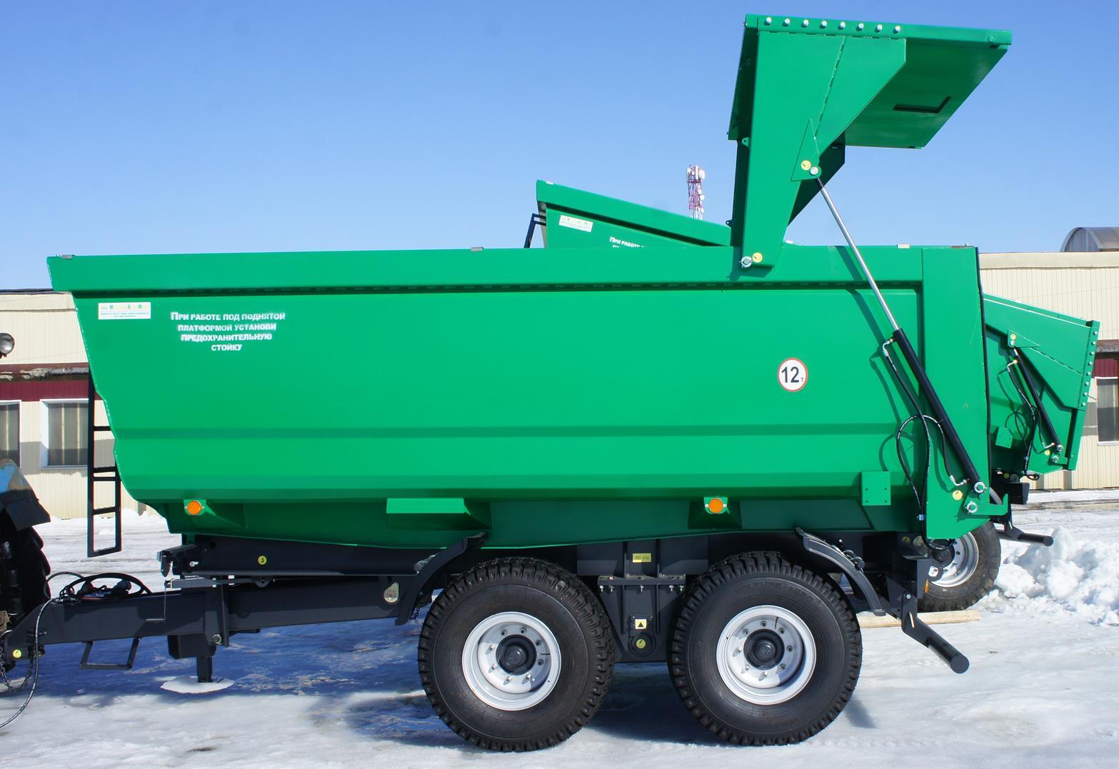 Свал груза с платформы назад. Полуприцеп предназначен для эксплуатации с колёсными тракторами классов 3,0 -4,0.