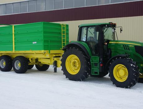 Допускается перевозка сыпучих строительных грузов. Свал груза с платформы назад. Полуприцеп предназначен для эксплуатации с колёсными тракторами классов 3,0 - 5,0.