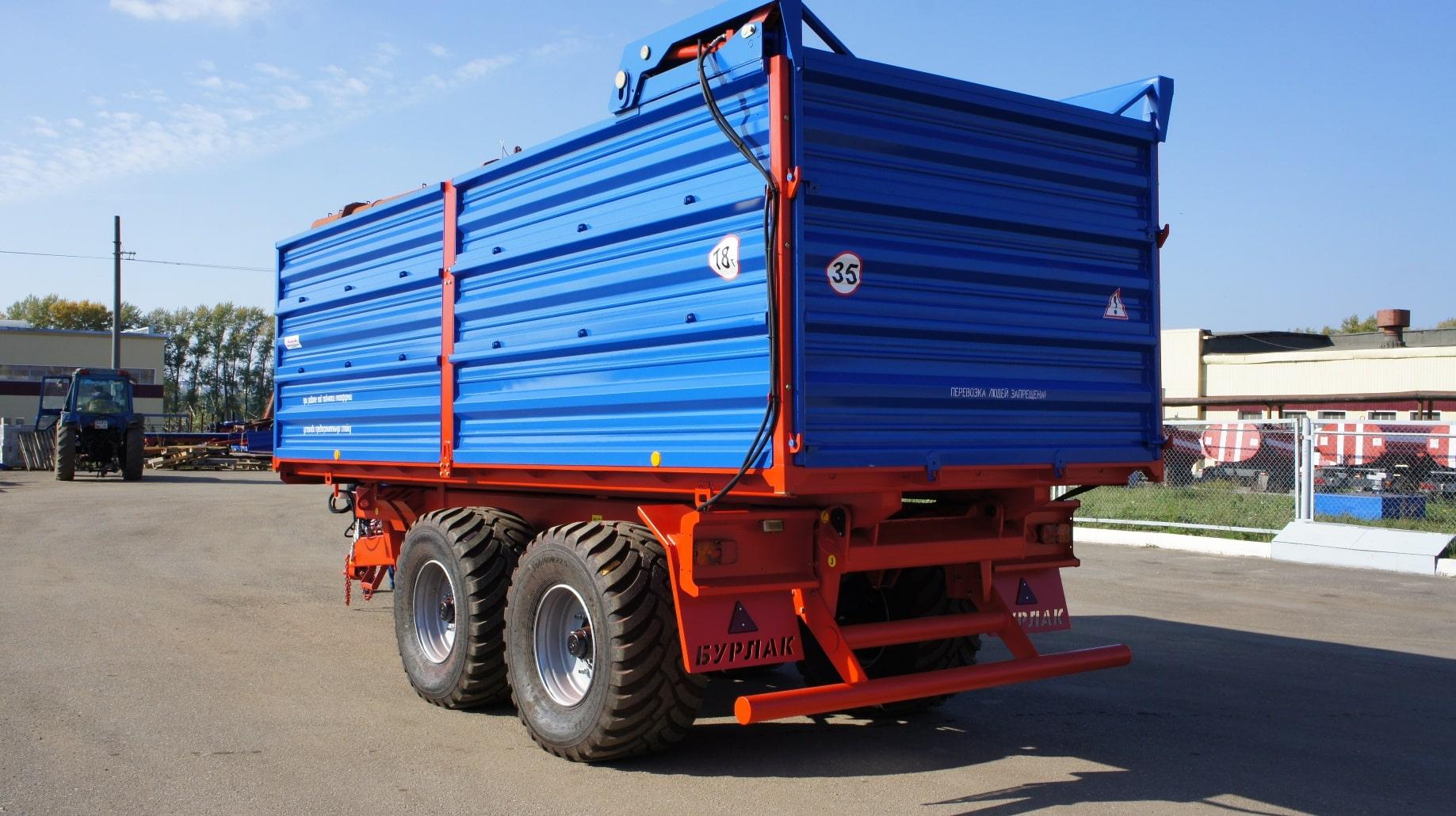 Свал груза с платформы назад. Полуприцеп предназначен для эксплуатации с колёсными тракторами классов 3,0 - 5,0.