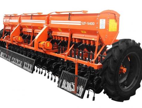 Сеялка зерновая СЗВ 5.400-V (Вариатор, увеличенный бункер 1,7 тонны, усиленная рама, шины-12,4 R28, сошник БОР со смещением, междурядье 15 см, пальцевые загортачи, норма высева включая мелкосемянные культуры от 1-510 кг/га, давление на сошник до 65 кг, маркерная система) предназначена для высева зерновых (пшеница, рожь, ячмень) зернобобовых (горох, фасоль, чечевица, бобы, соя ) и мелкосемянных культур (рапс, горчица, люцерна, эспарцет и т.д.) с одновременным внесением минеральных удобрений.
