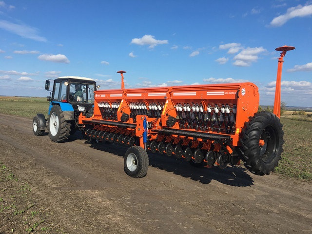 Сеялка зерновая СЗВ 5.400-06 (Редуктор, увеличенный бункер - 1,6 т., усиленная рама, шины - 12,4R28, сошник БОР со смещением, междурядье 15 см, прикатывающие колеса, маркерная система) предназначена для высева зерновых (пшеница, рожь, ячмень) зернобобовых (горох, фасоль, чечевица, бобы, соя) с одновременным внесением минеральных удобрений.