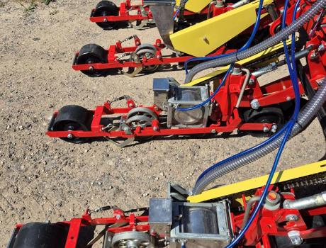 - Сеялка состоит из сварной рамы, на которую устанавливаются навеска, маркеры, вентилятор, приводной механизм и высевающие секции;