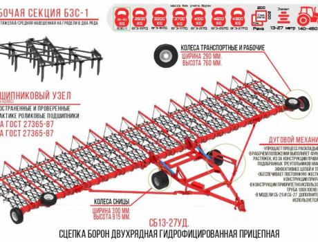 Производительность, га/ч до 23 Рабочая скорость, км/ч до 12 Ширина захвата, м 19 Количество секций, шт 38 Производительность, га/ч до 25 Рабочая скорость, км/ч до 12 Ширина захвата, м 21 Количество секций, шт 42 Производительность, га/ч до 28 Рабочая скорость, км/ч до 12 Ширина захвата, м 23 Количество секций, шт 46 Производительность, га/ч до 30 Рабочая скорость, км/ч до 12 Ширина захвата, м 25 Количество секций, шт 50 Производительность, га/ч до 32 Рабочая скорость, км/ч до 12 Ширина захвата, м 27 Количество секций, шт 54 Производительность, га/ч 6,9-13,8 Рабочая скорость, км/ч 6-12 Конструктивная ширина захвата, м 11,5 Глубина обработки, см до 8 Производительность, га/ч 9,0-18,0 Рабочая скорость, км/ч 6-12 Конструктивная ширина захвата, м 15 Глубина обработки, см до 8 Производительность, га/ч 11,1-22,2 Рабочая скорость, км/ч 6-12 Конструктивная ширина захвата, м 18,5 Глубина обработки, см до 8 Производительность, га/ч 13,2-26,4 Рабочая скорость, км/ч 6-12 Конструктивная ширина захвата, м 22 Глубина обработки, см до 8
